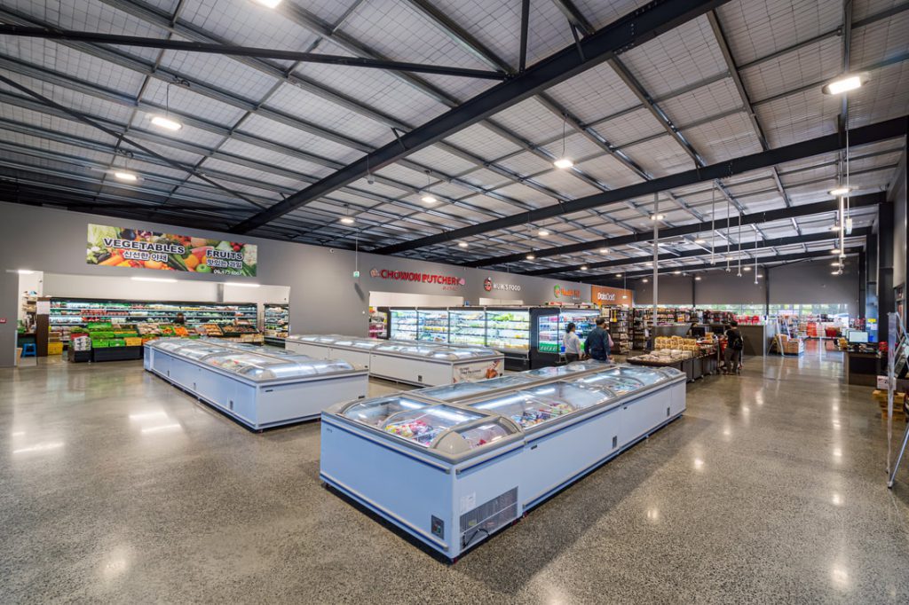 With a steep and challenging site, we overcame the adverse ground conditions using 120 11m in-situ concrete piles, and a hybrid slab-on-grade and rib-and-infill floor. This build boasts full-height feature precast elements, temperature-controlled retail areas, and heavy grind concrete polished floors. With a full tenancy fitout and a coloured concrete yard, this project combines premium construction materials and finishes to deliver a striking profile and enhance the build’s longevity.
