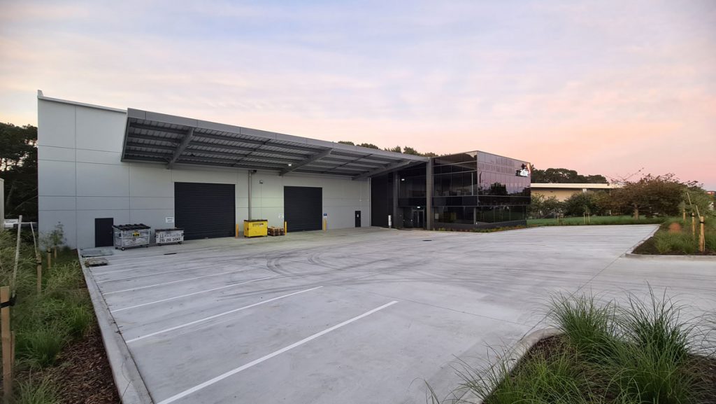 This build was the steepest site we had worked with before, but this didn’t hinder us from delivering maximum site coverage with a high load warehouse with full height feature precast walls. This was achieved with heavy in-situ bored concrete piles; 18m at the longest – supporting a shell beam and rib-and-infill floor. The frontage presents a 2-storey office with a striking architectural façade – and a high-end bespoke fitout. The site also boasts a generous concrete yard and large cantilevered canopy.